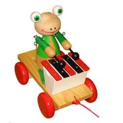 Xylophone la grenouille laquée Ce jouet d'éveil en bois pour bébé est extrêmement robuste, fiable et indémodable. Un jouet à tirer et à pousser pour le bonheur des enfants, un vrai encouragement pour apprendre ou confirmer la marche