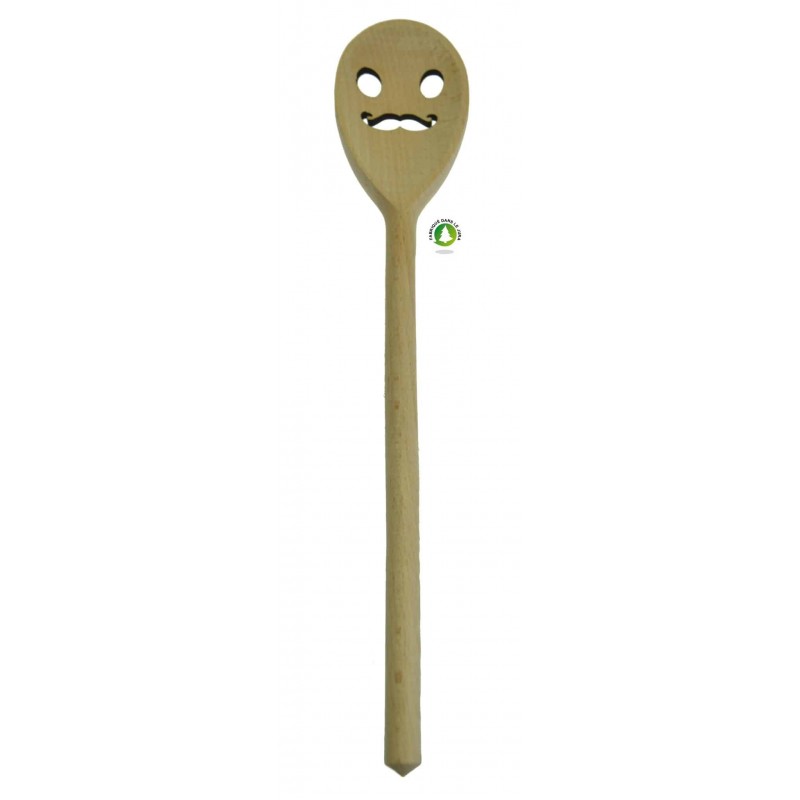 Cuillère en bois de hêtre de forme ovale longueur 30cm, modèle moustache, fabrication artisanale